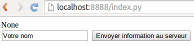 Ouvrez votre navigateur et indiquez-lui l'url de votre serveur web, dans notre cas ce sera localhost:8888/index.py